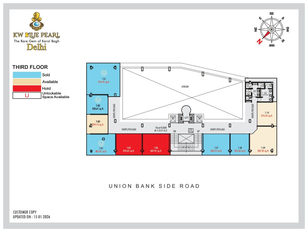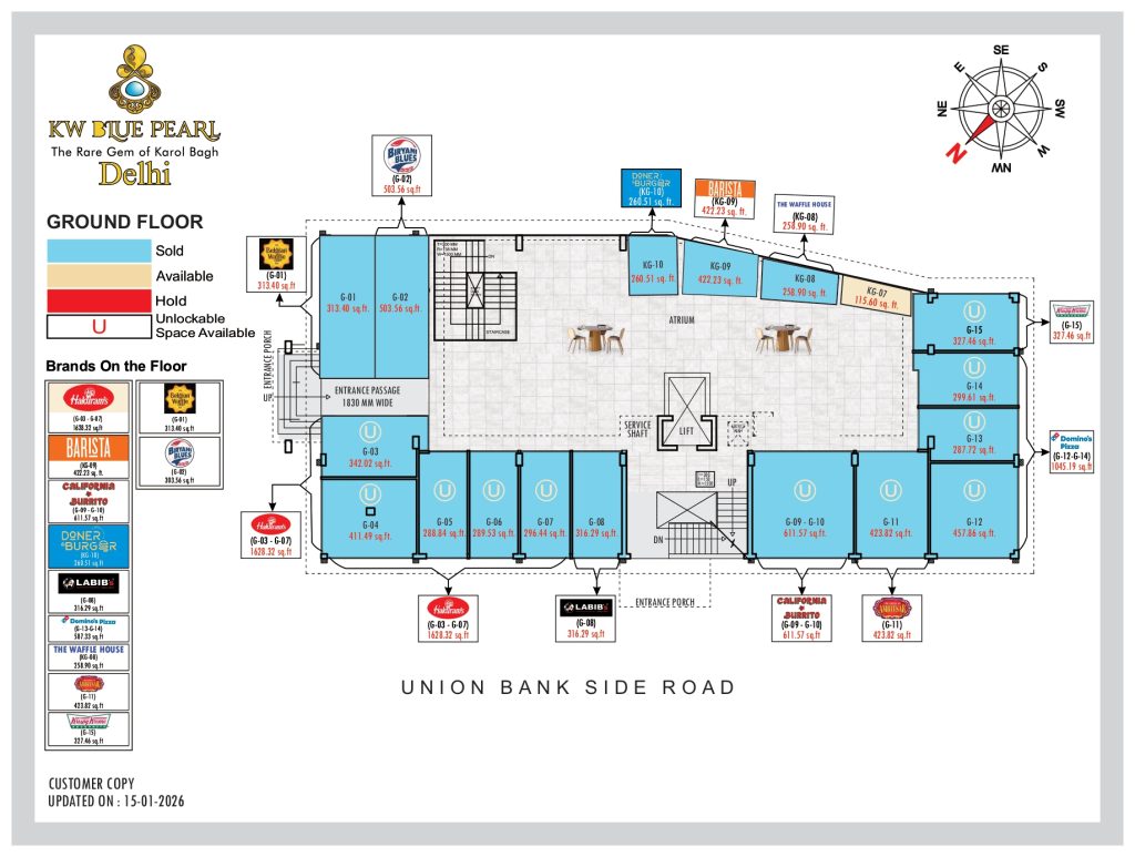 KW Blue Pearl is strategically located in Karol Bagh, one of Delhi’s most established high-street commercial zones, offering strong retail demand and consistent footfall.
